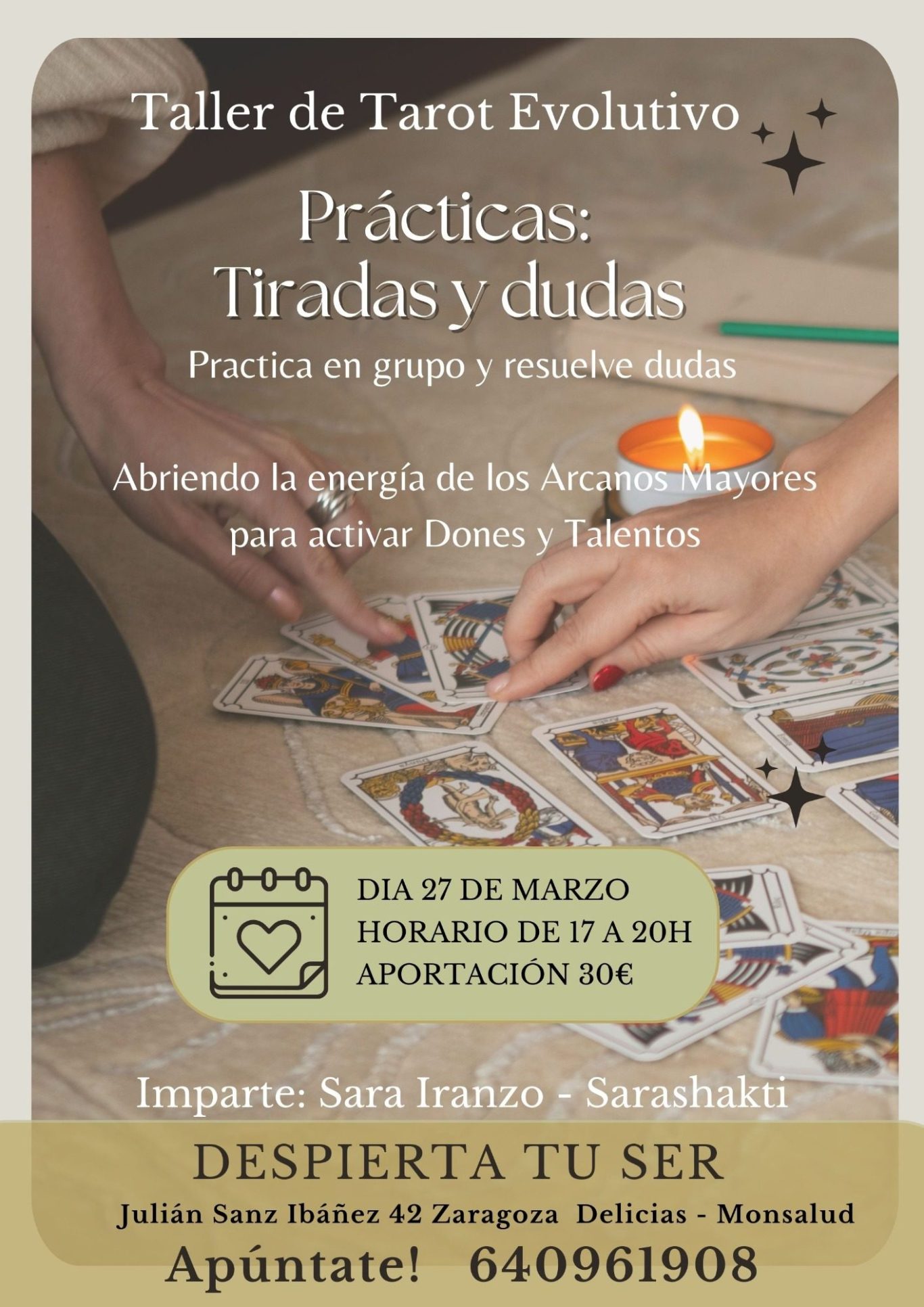 📍 Lugar: Centro de Bienestar Despierta tu Ser, en Julián Sanz Ibañez 42, Zaragoza (Delicias- Monsalud